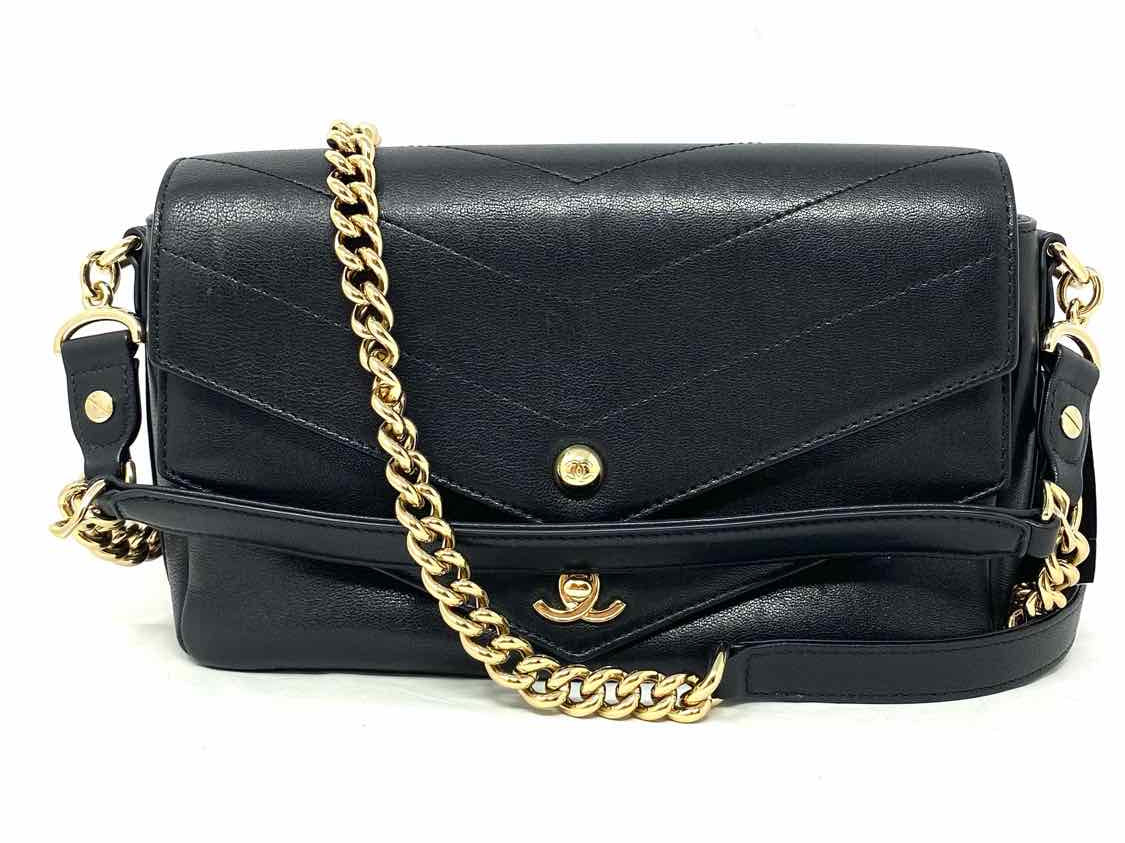 Chanel 2018/2019 Marc v-stitch Black Quilted Chevron Leather Satchel