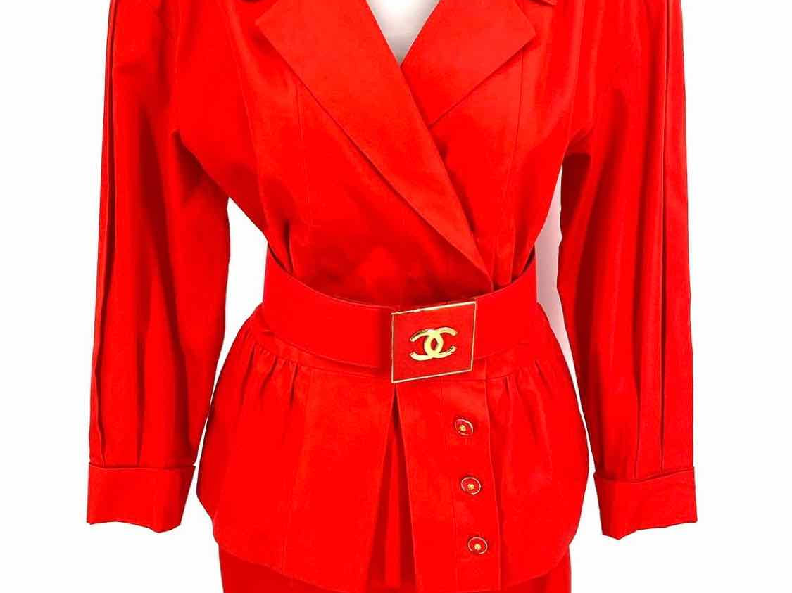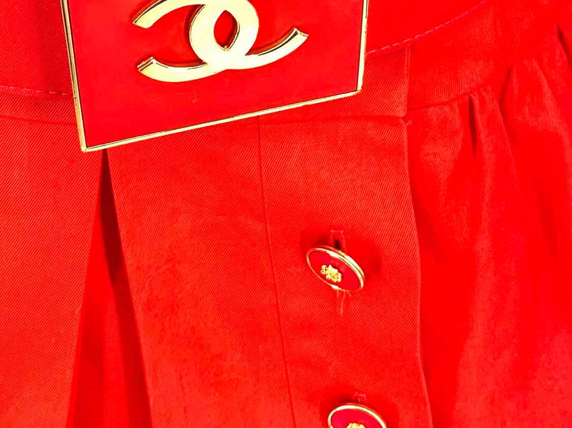 CHANEL BOUTIQUE Vintage Women's Red Sz 40/8 3 Piece Cotton Gathered Skirt Set