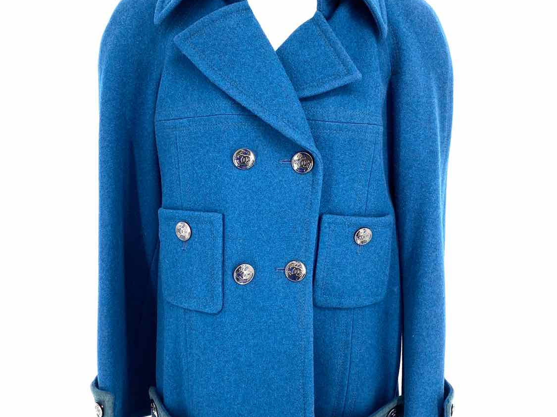 Chanel Women's Cerulean Double Breasted Wool Size 40/S Coat