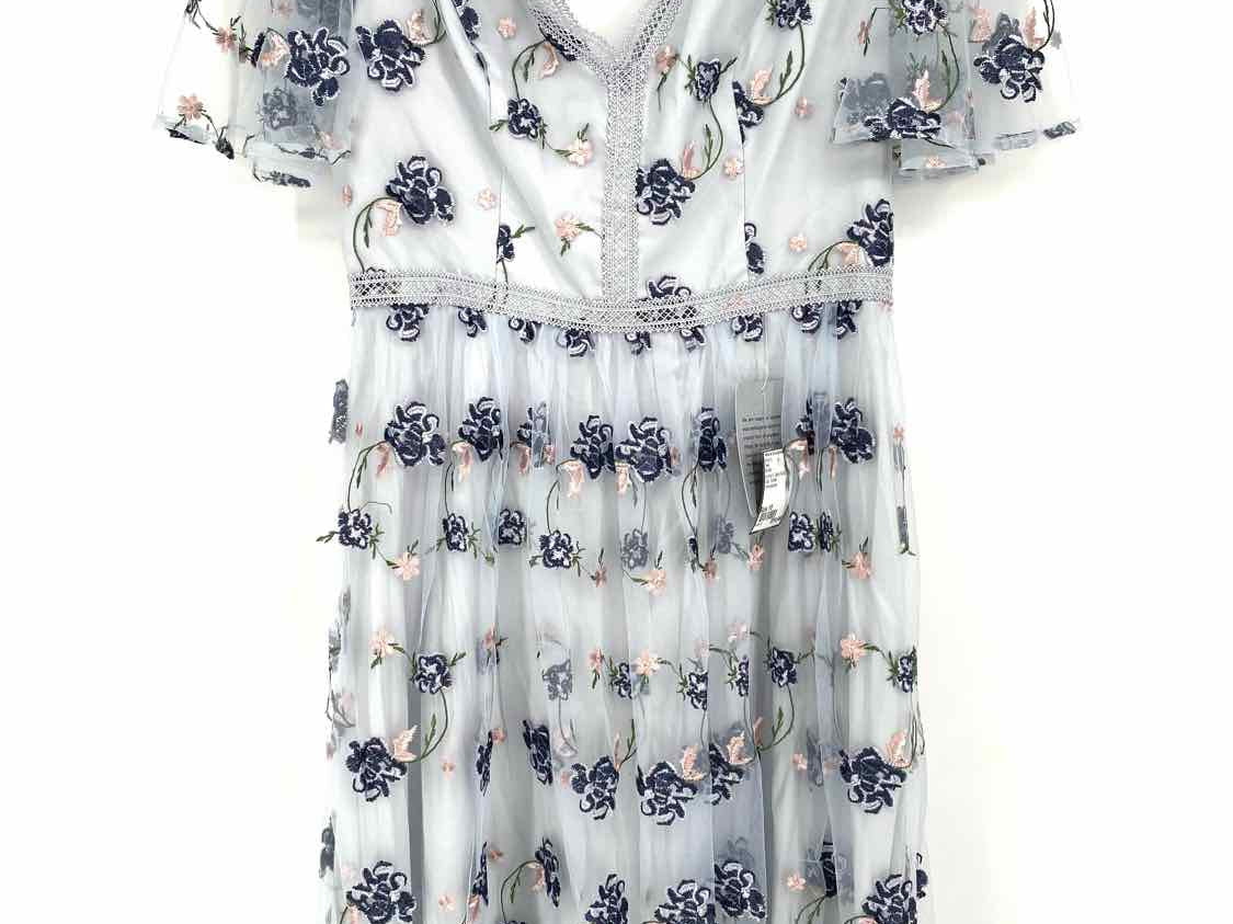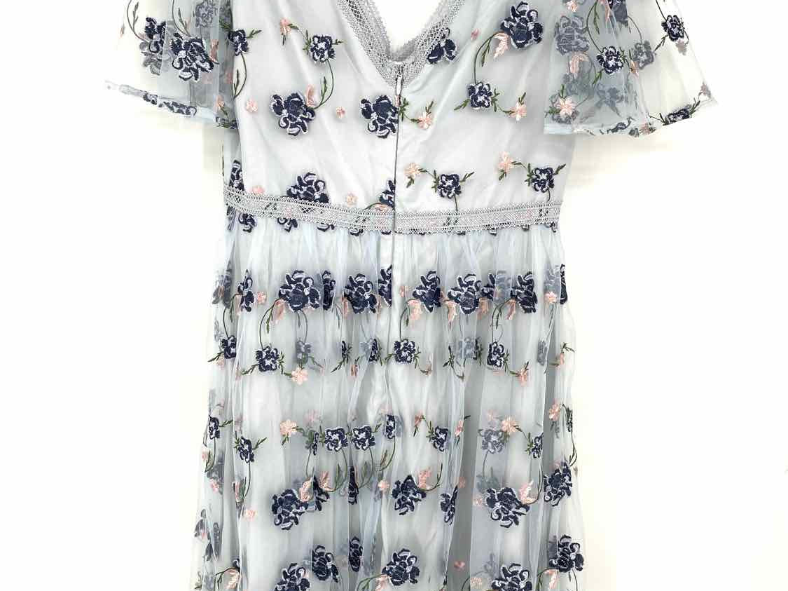 Chi Chi Women's Baby Blue Size 10 Midi Tulle Flower Embroidered Dress