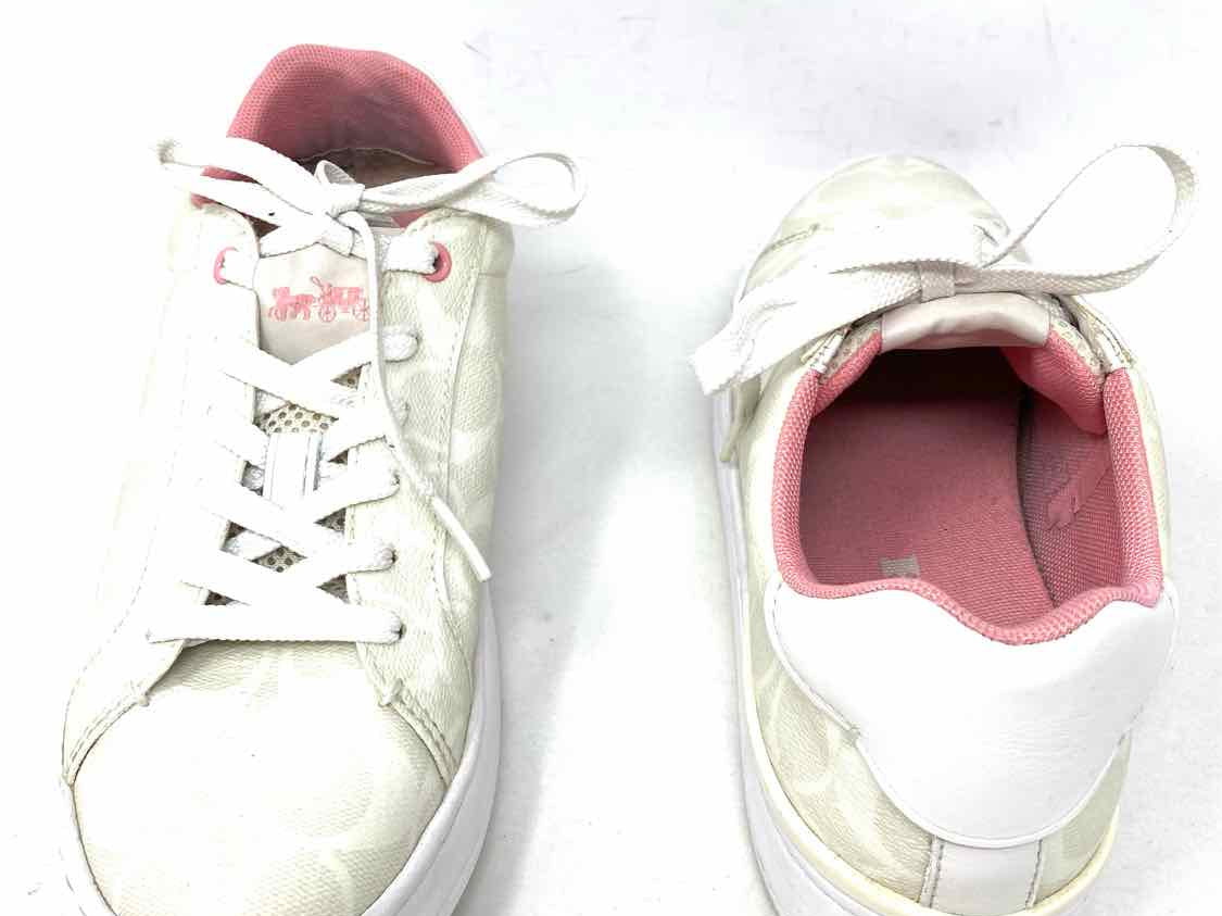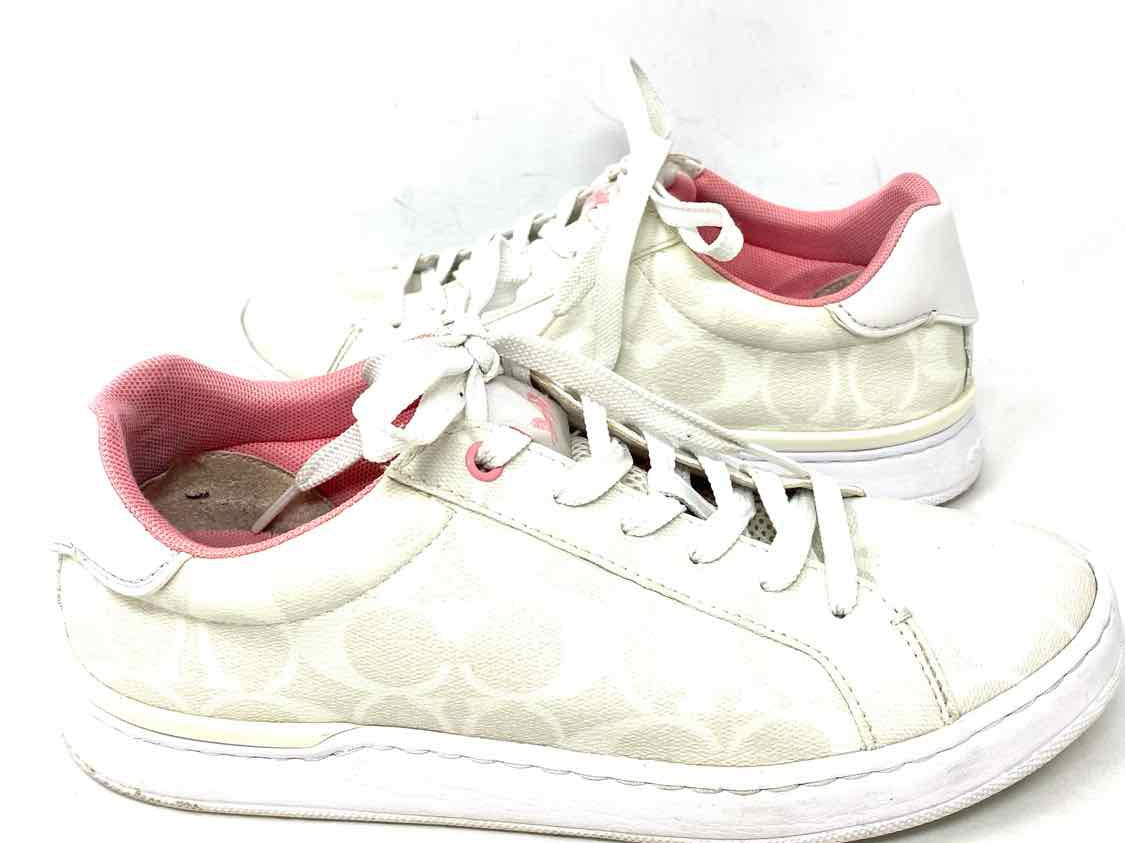 Coach High Line Signature Women's White Pink Size 7.5 Lace-up Monogram Sneakers
