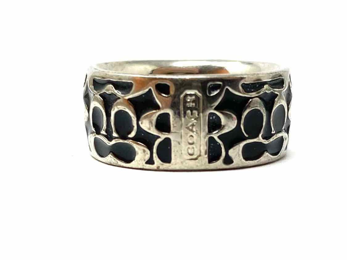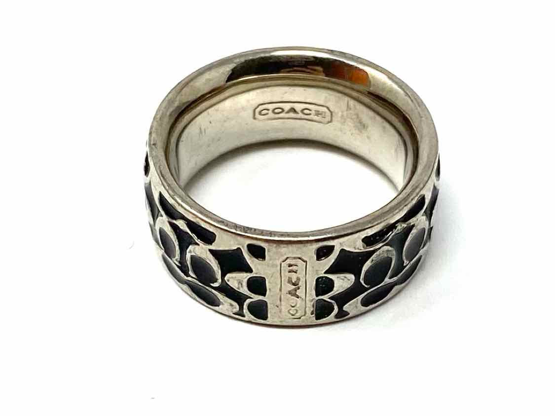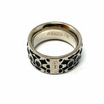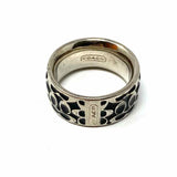 Coach size 8 Black Silver Tone Band Signature Ring