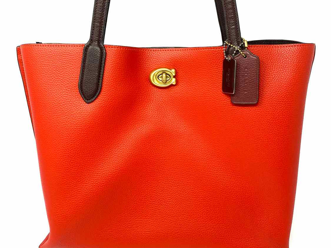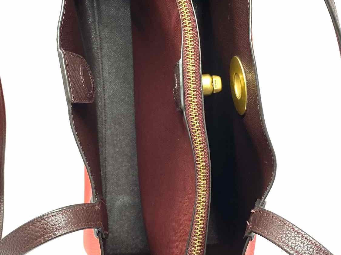 Coach Willow Red Burgundy Color Block Leather Tote