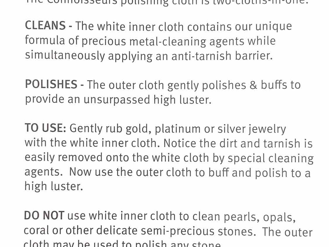 Connoisseurs Jewelry Cleaning Cloth for Gold, Platinum, Silver