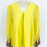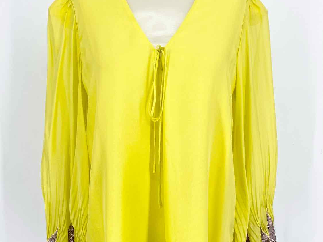Cynthia Rowley Women's Yellow Silk Sequined Starburst Size S Long Sleeve
