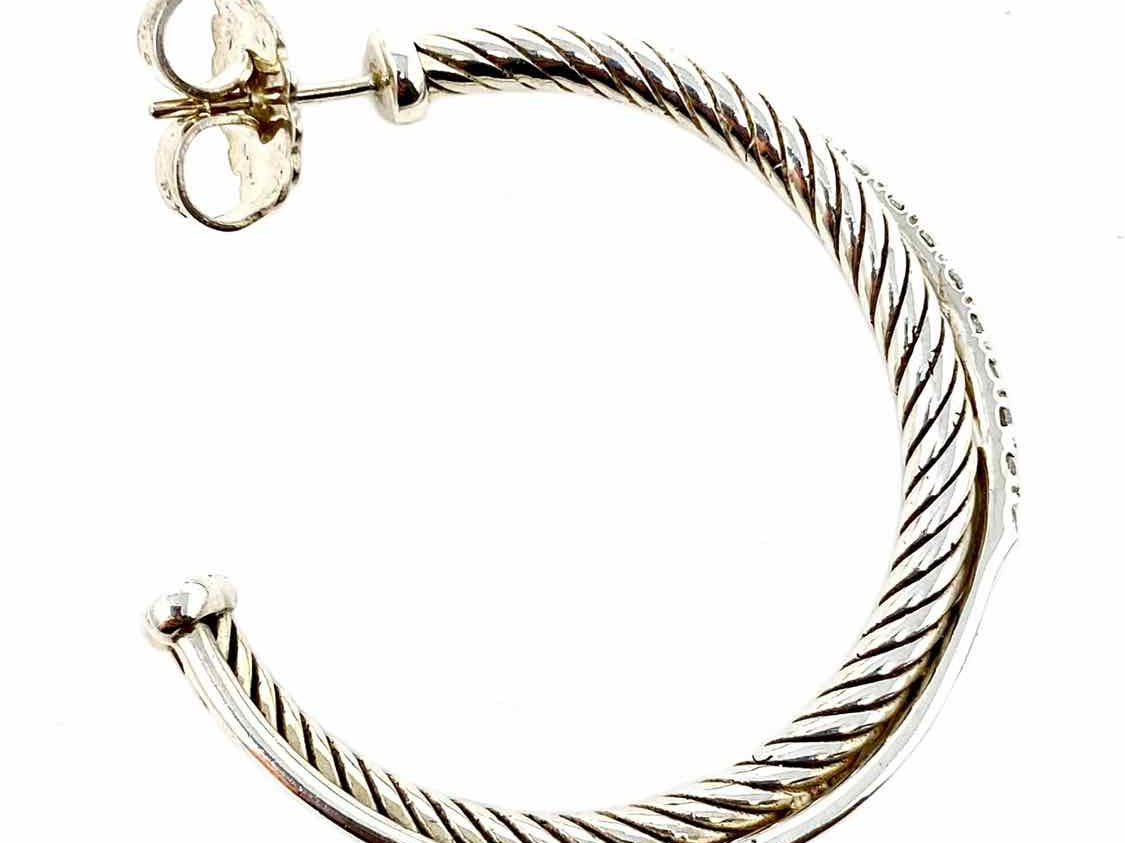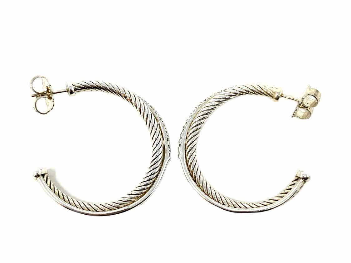 DAVID YURMAN Crossover .925 Silver 14K Post Hoop Cable Diamond Earrings