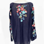 johnny was Women's Navy Blue Cupra Rayon Floral Size XXL Long Sleeve