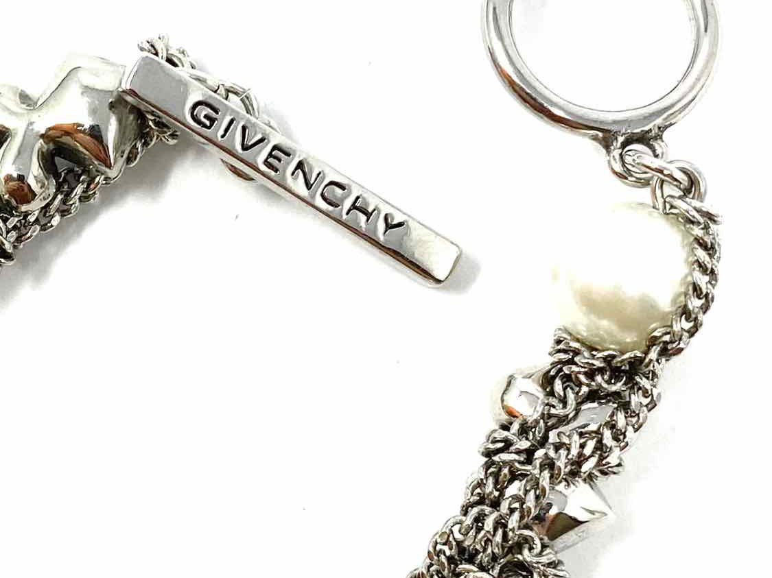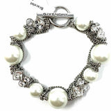 Givenchy White Silver Tone Chain Faux Pearl & Crystal Bracelet
