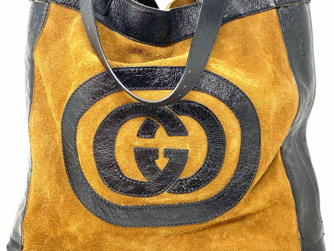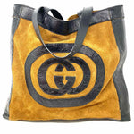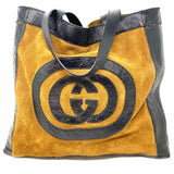 Gucci Large Ophidia Soft Suede Brown Black Open Top Interlock GG Leather Tote