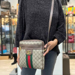 Gucci Ophidia Small w/ Red & Green Web Gray Zip GG SUPREME Messenger Bag