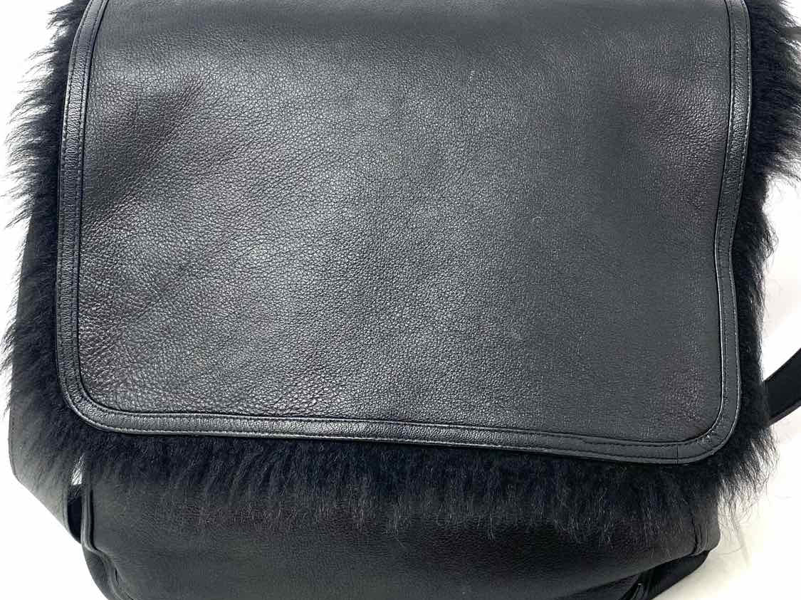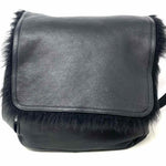 Gucci Vintage Faux Fur Black Reversible Leather Flap Messenger Bag Made in Italy