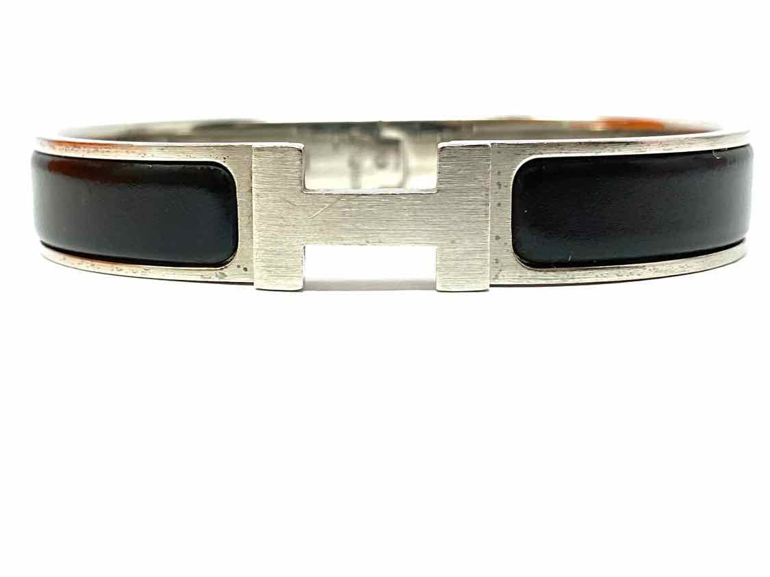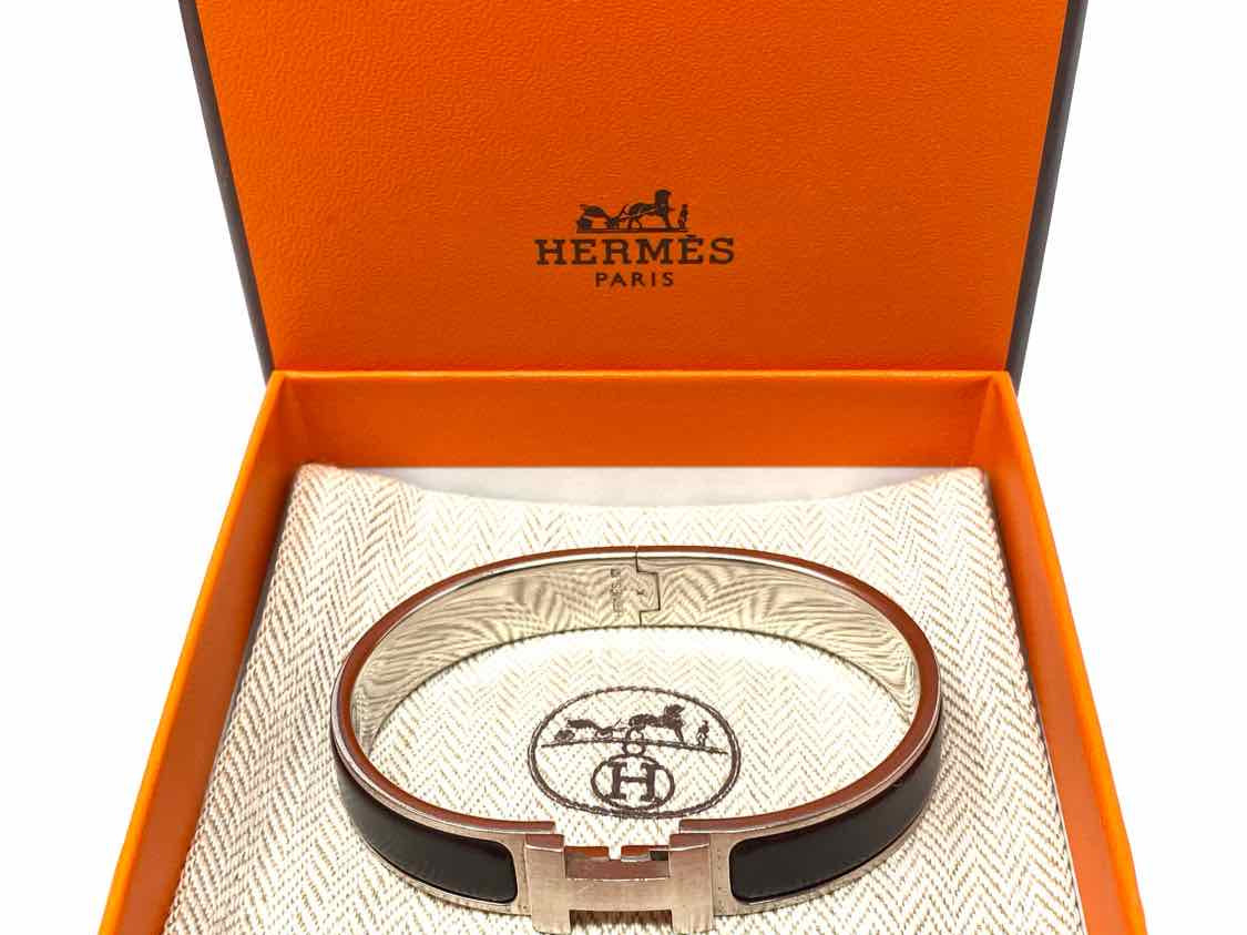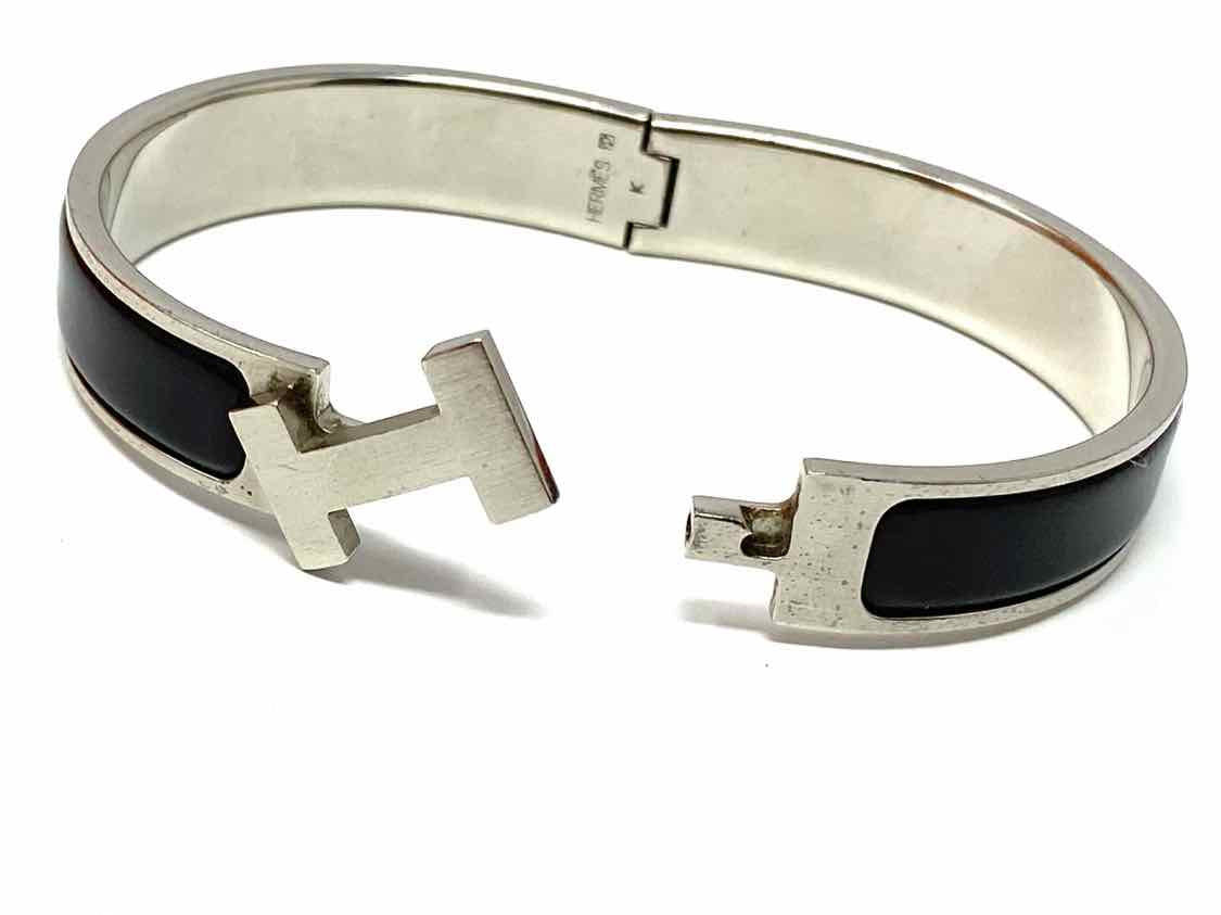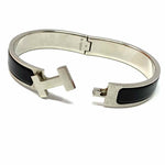 Hermes Palladium Plated 2007 Clic H Black Silver Tone Hinged Bracelet