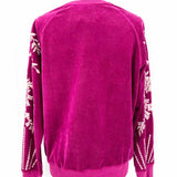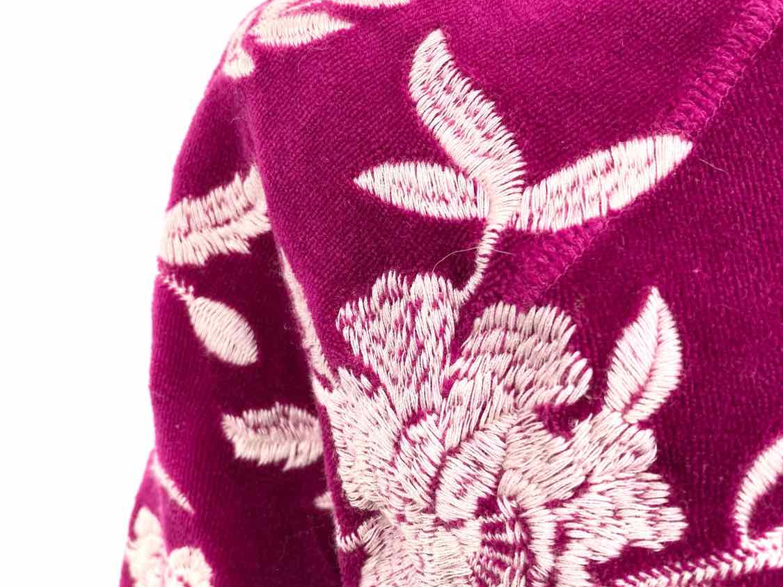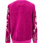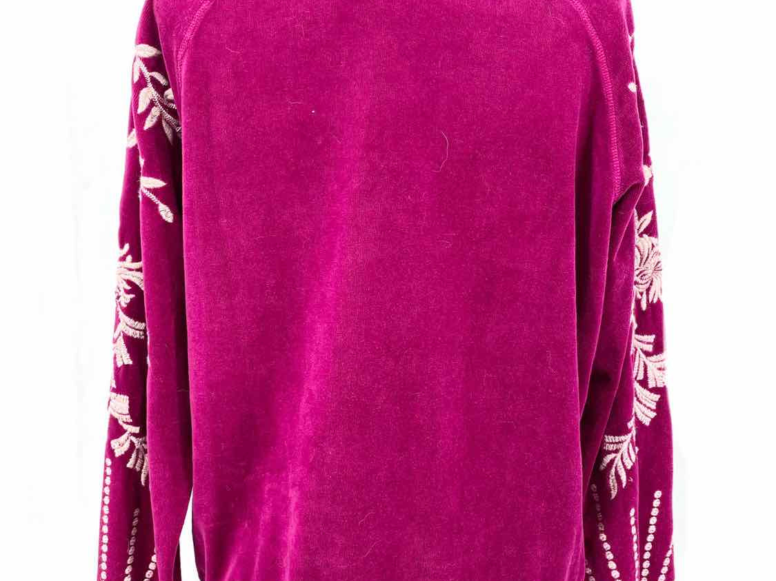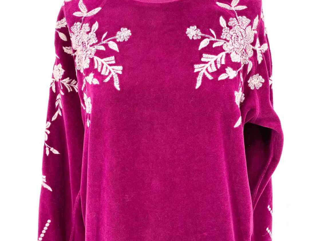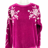 johnny was Leona Relaxed Magenta Size S Crew Neck Velour Embroidered Sweater