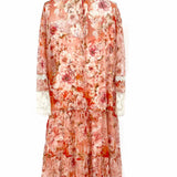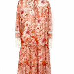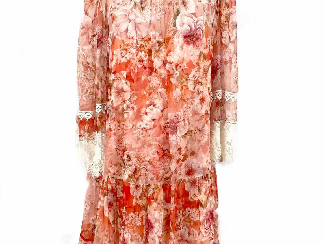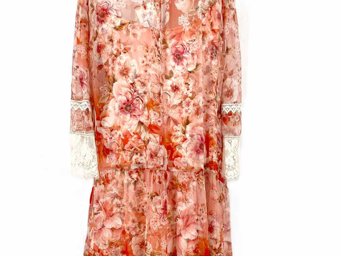 johnny was Yours Truly Orange Size XL 3/4 Sleeve Silk Sheer Floral Lace Dress