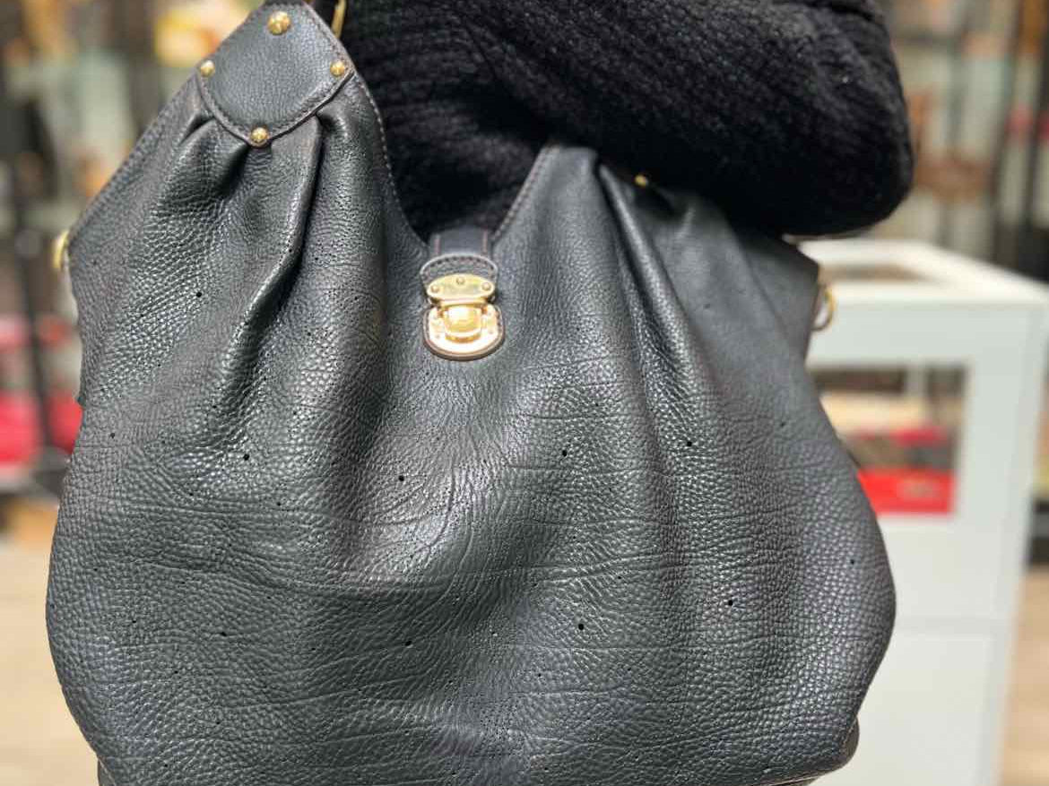 LOUIS VUITTON 2008 Mahina XL Black perforated Pebbled Leather Tote