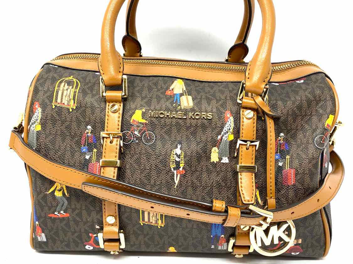 Michael by Michael Kors "Jet Set Girls" Bedford Brown Boston Monogram Satchel