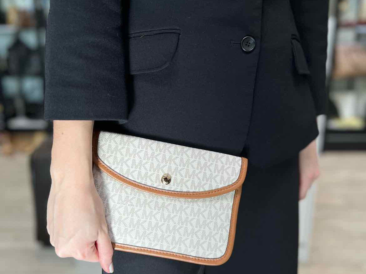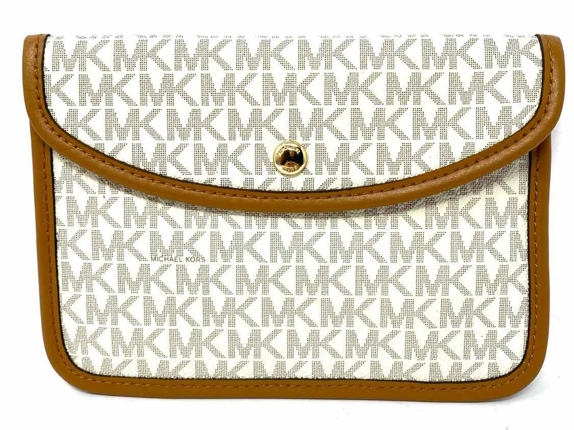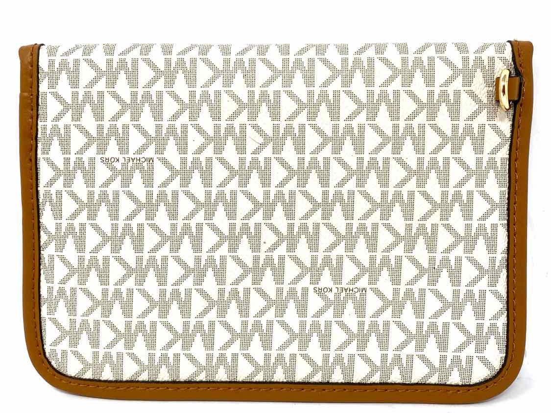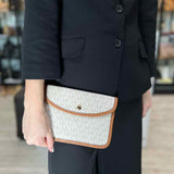 Michael by Michael Kors Coated Canvas White Gray Flap Monogram Clutch