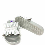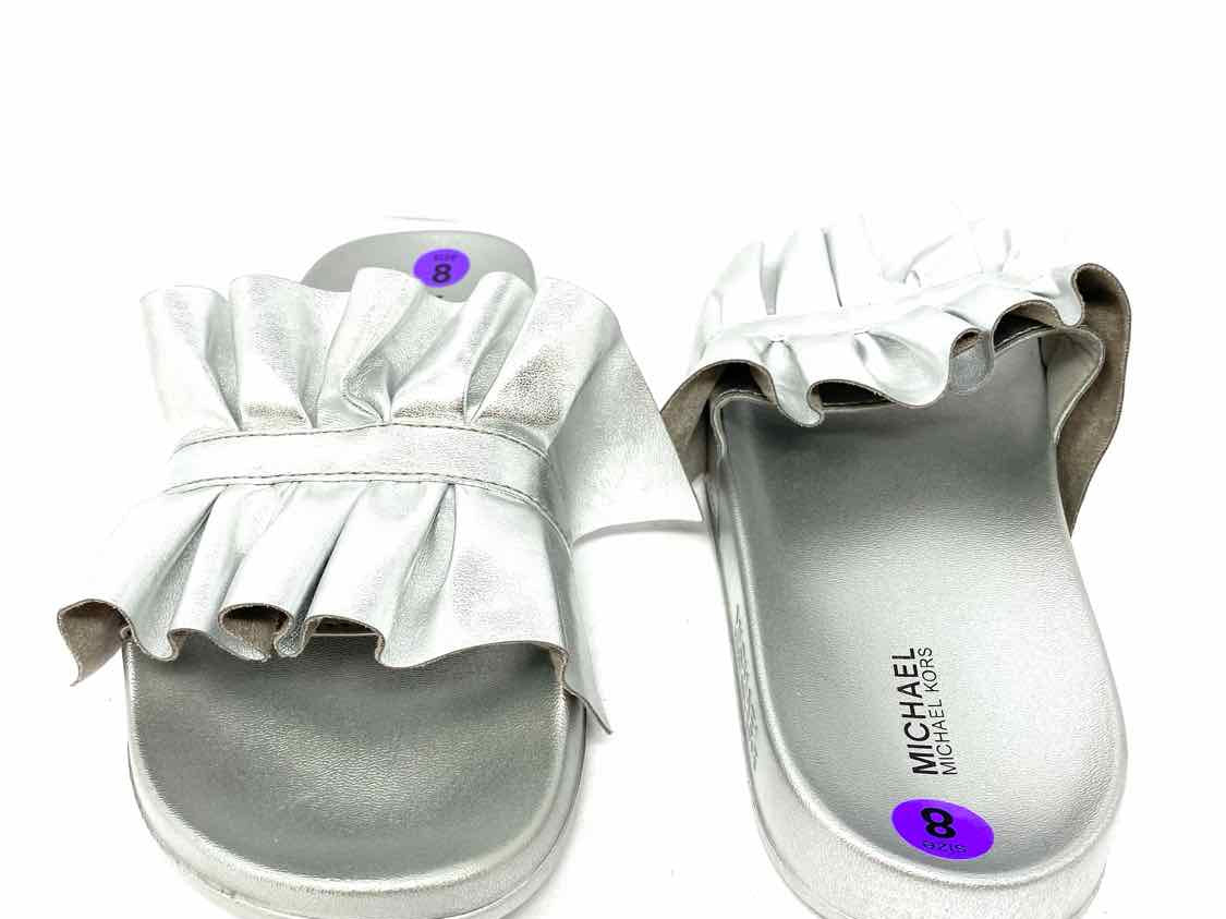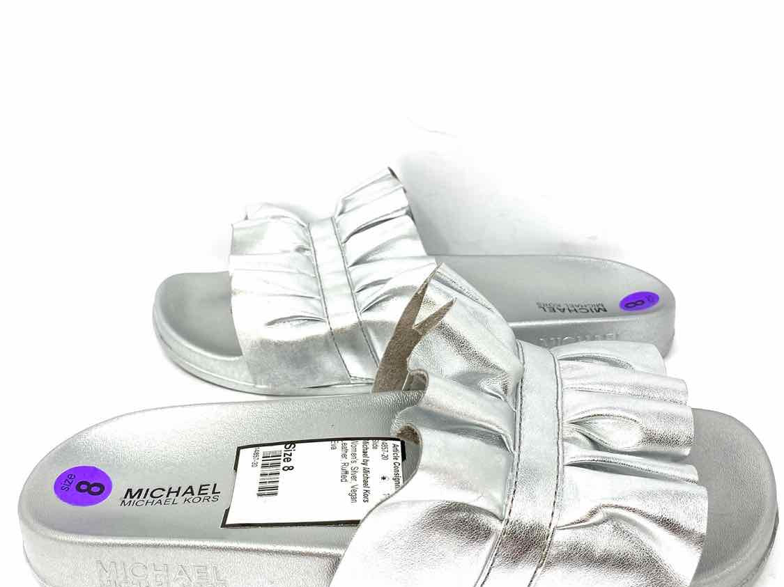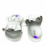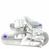 Michael by Michael Kors Women's Silver Size 8 Vegan Leather Ruffled Slide