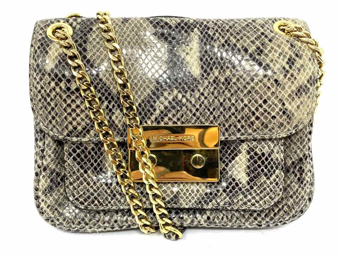 Michael Kors Beige/Black Flap Snake Embossed Leather Shoulder Bag