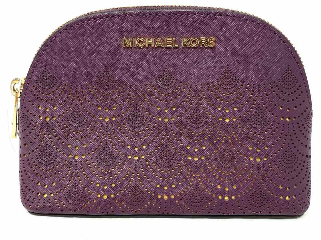 Michael Kors Burgundy Jet Set Travel Pouch perforated Saffiano Leather Clutch