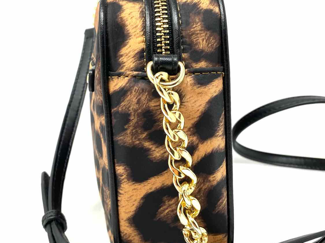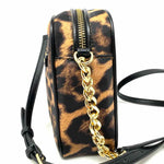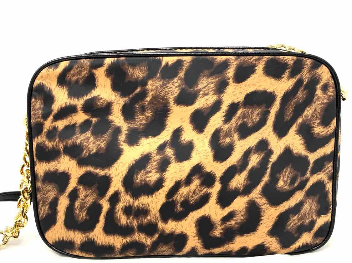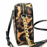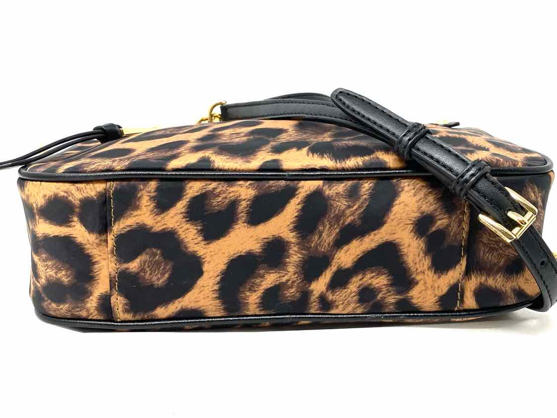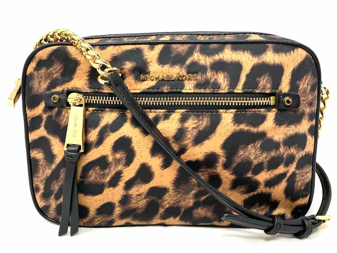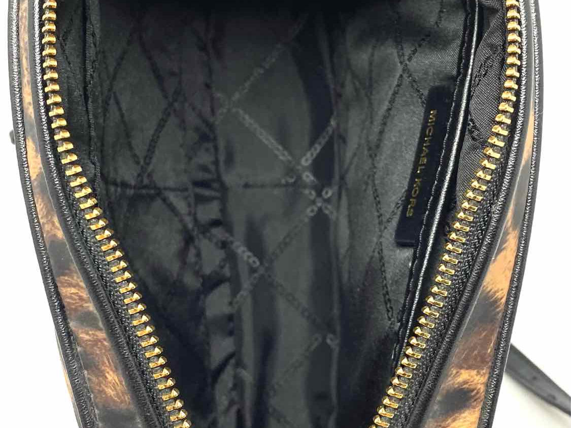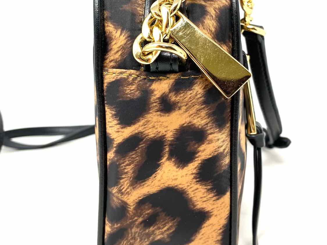 Michael Kors Jet Set Nylon Brown Black Zip Leopard Print Crossbody