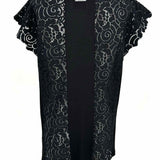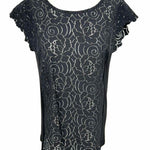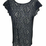 NOR Denmark Women's Black Sheer Floral Size 2 Short Sleeve Top