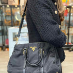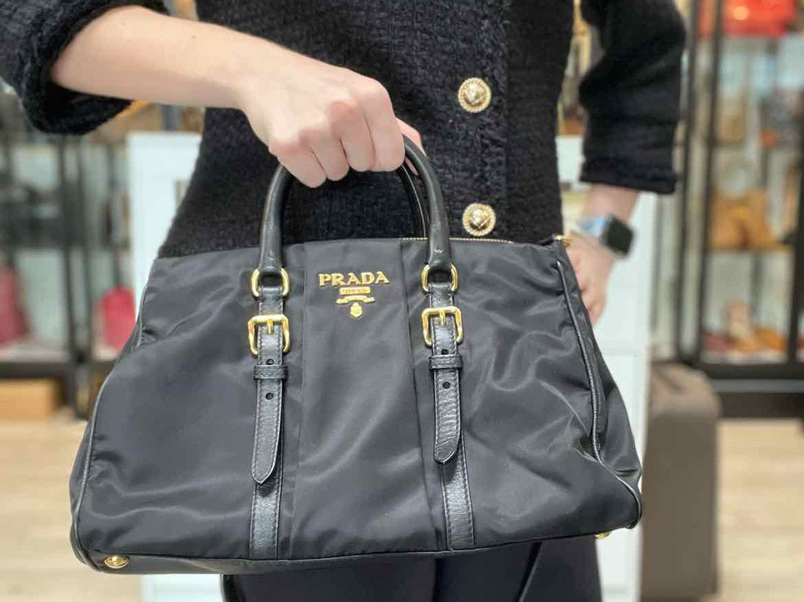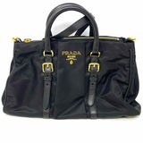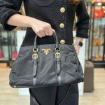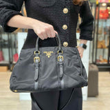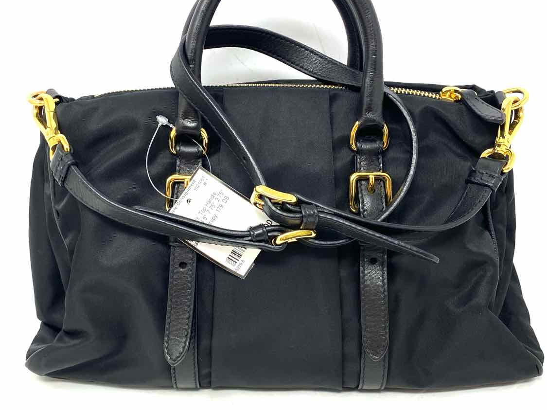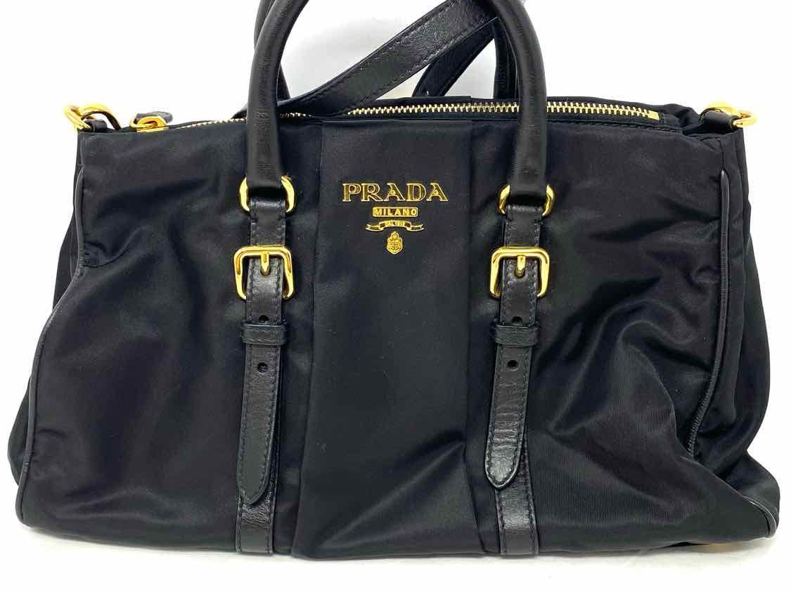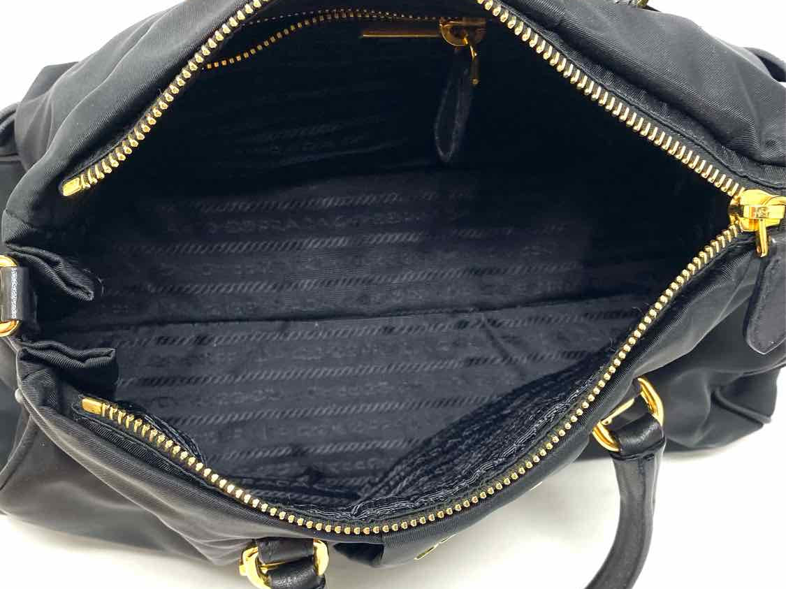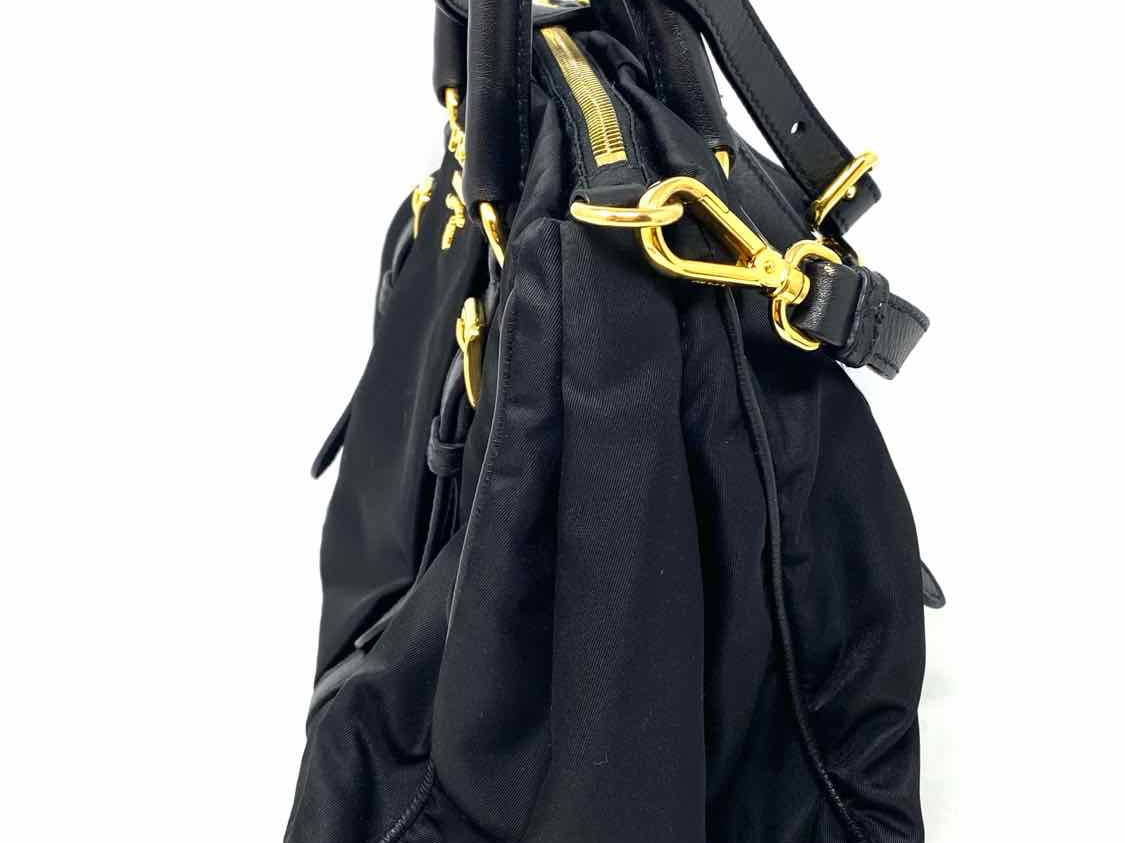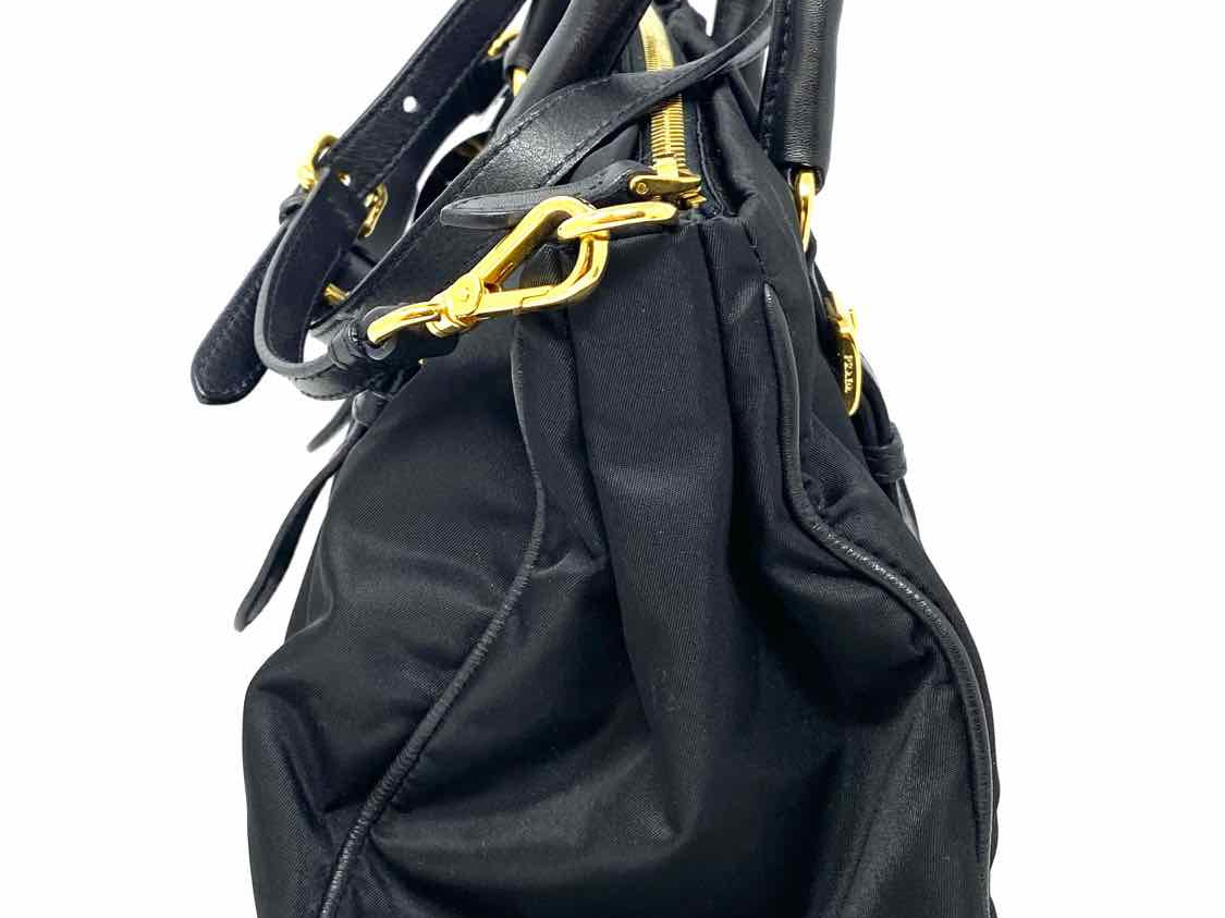 Prada Bauletto Nylon Black Top Handle Zip Satchel