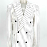 The Frankie Shop Women's White Double Breasted Pinstripe Size S Blazer