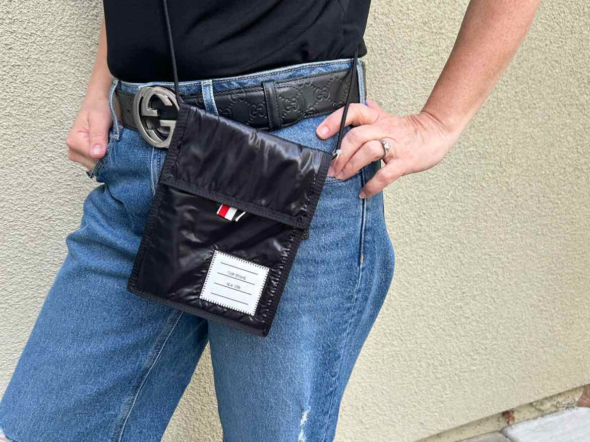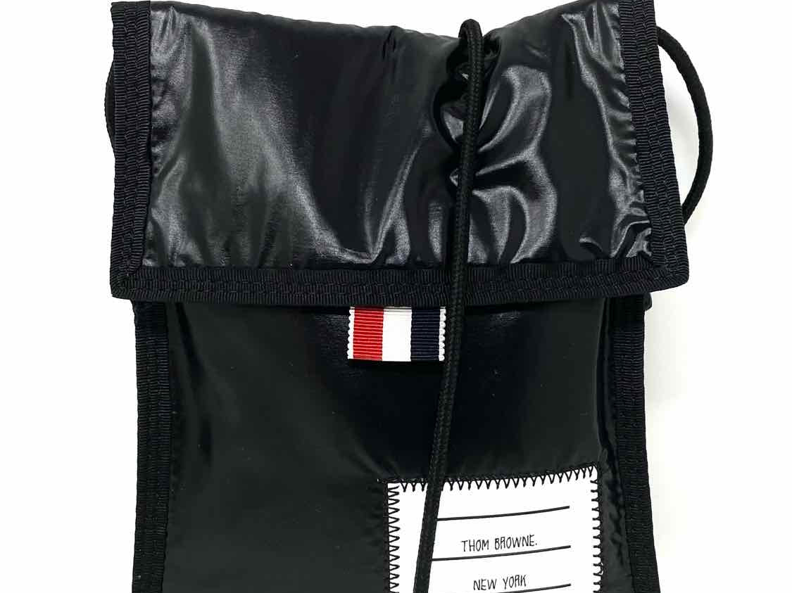 THOM BROWNE. Neck Pouch Ripstop Black Drawstring Logo Crossbody