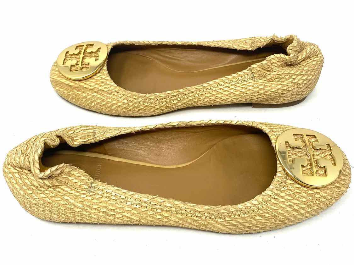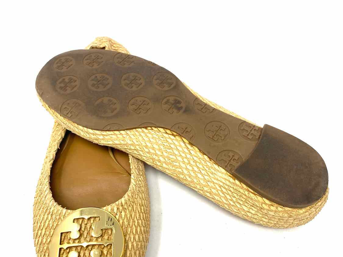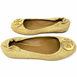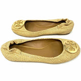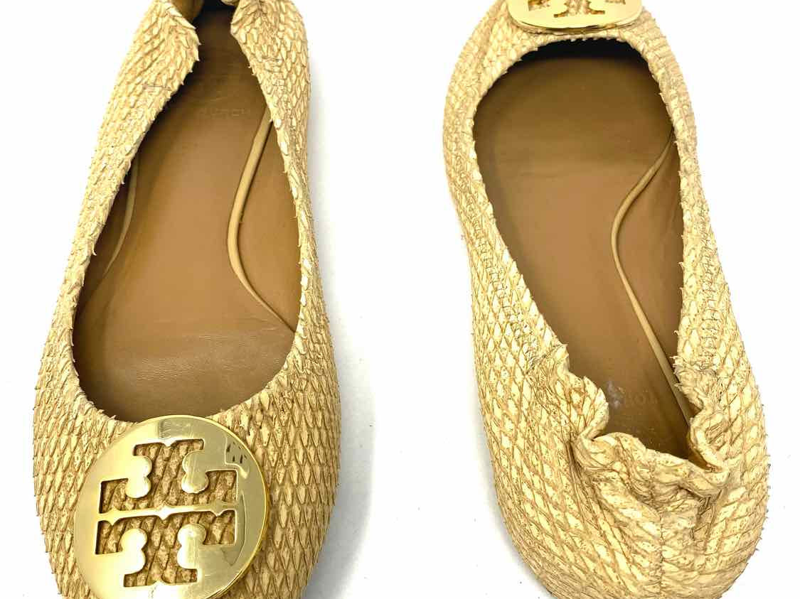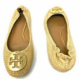 Tory Burch Reva Women's Beige Size 7 Snakeskin Logo Flats