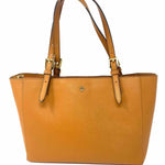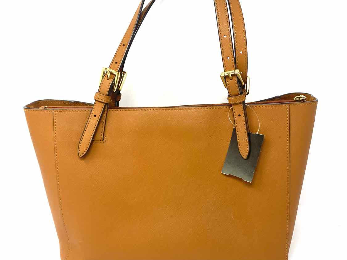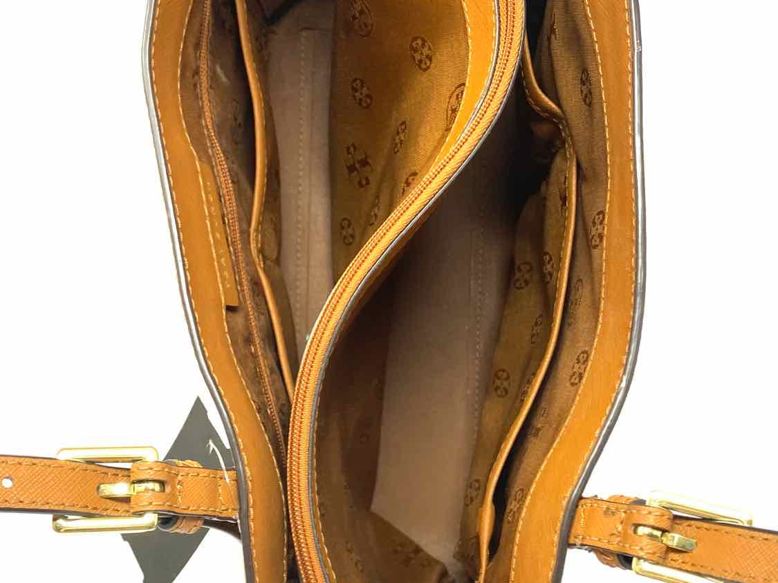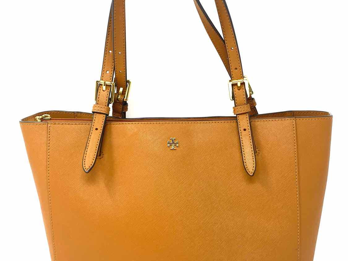 Tory Burch Small Buckle Caramel Saffiano Leather Tote