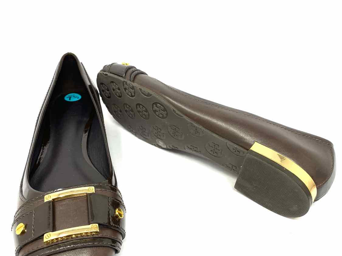 Tory Burch Women's Brown Size 7.5 Round Toe Leather Buckle Flats