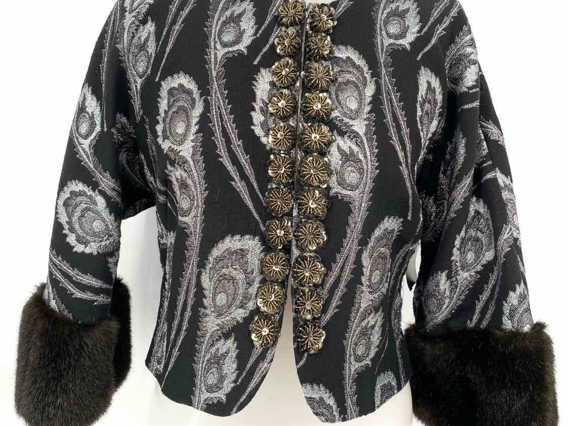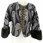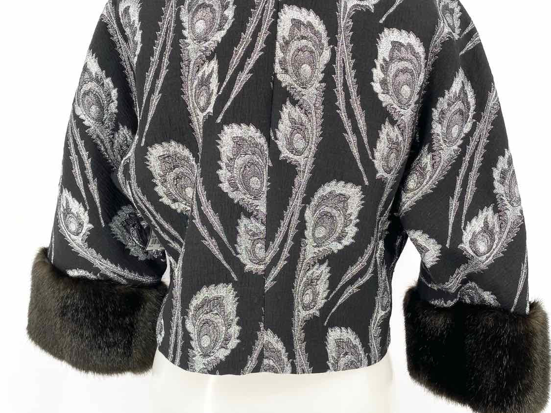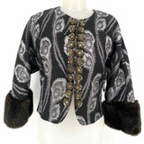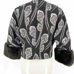 Trina Turk Women's Gray Size 4/s 3/4 Sleeve Faux Fur Trim Crop Jacket