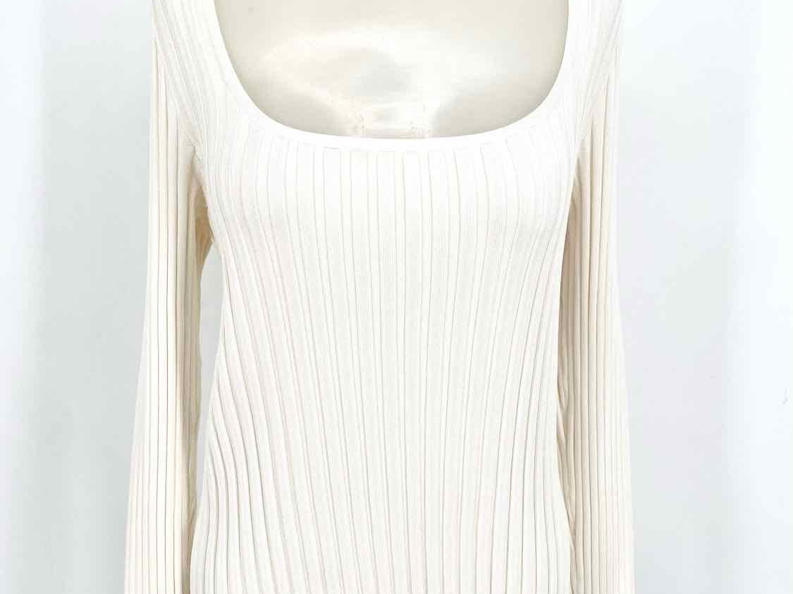 VERONICA BEARD Women's White Scoop Neck Ribbed Size XL Long Sleeve